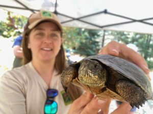 ASA held an online webinar and field trip to Acorn Women Lake about Western pond turtles—a declining species and candidate for listing as a threatened species under the Endangered Species Act—with Jade Keehn, wildlife biologist for the Oregon Department of Fish and Wildlife, and Erin Considine, wildlife biologist for the US Forest Service. We walked around Acorn Women Lake, viewed pond turtles, learned about their ecology, and also participated in a long-term monitoring project at the lake, where an estimated 200+ turtles live and are monitored yearly.